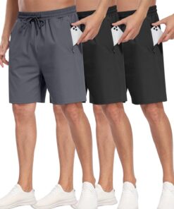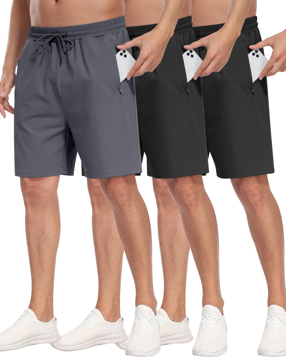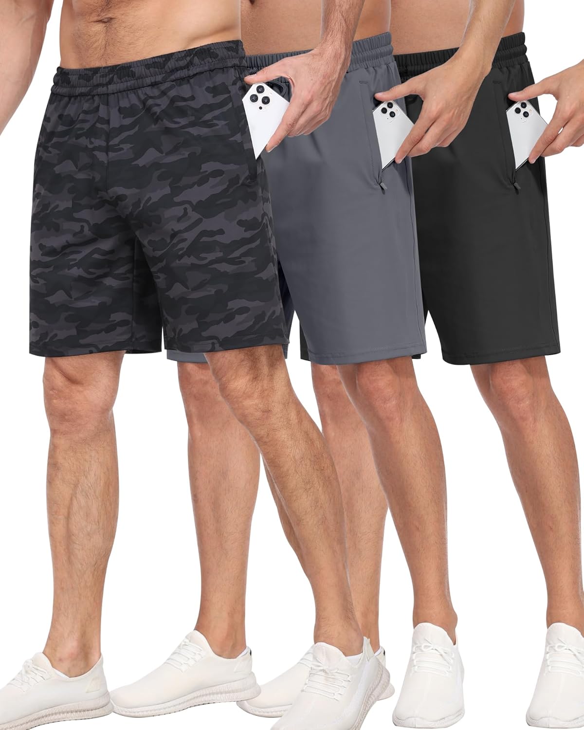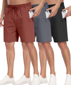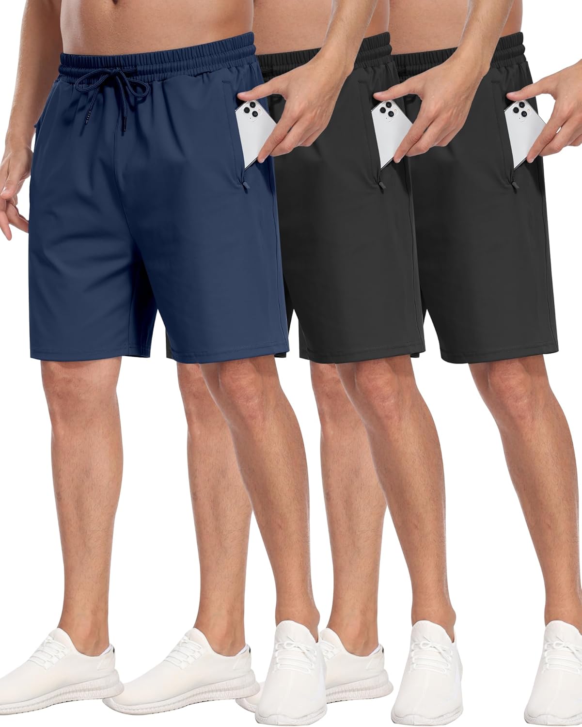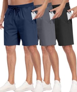 3 Pack Men’s Athletic Running Shorts with Zipper Pockets,Gym Workout Basketball Hiking Shorts for Men