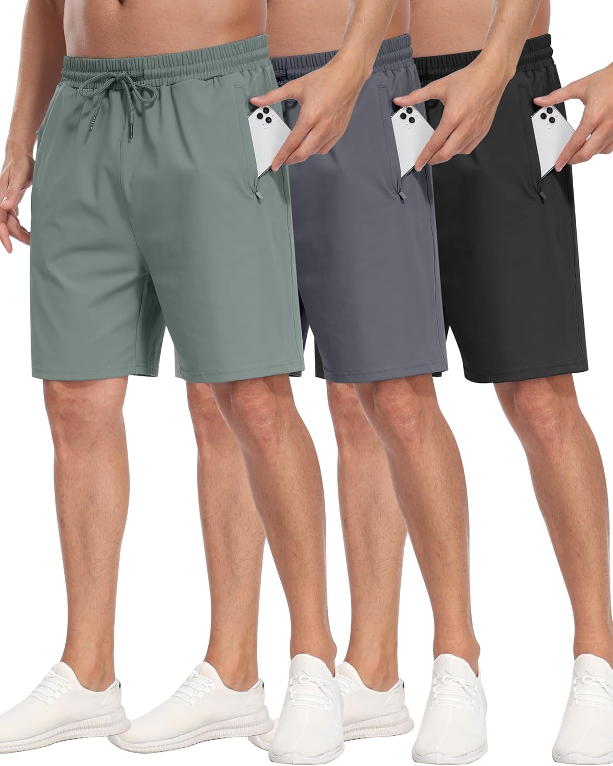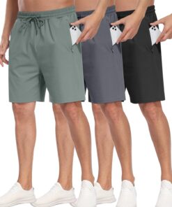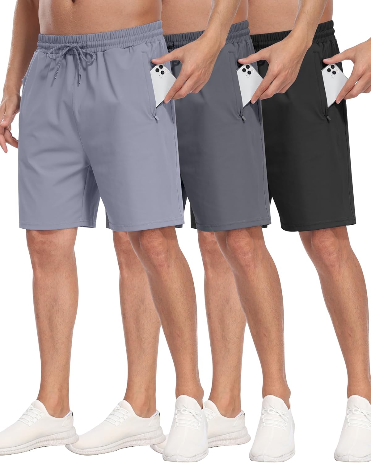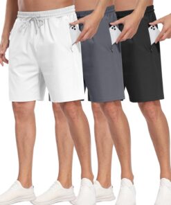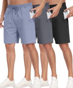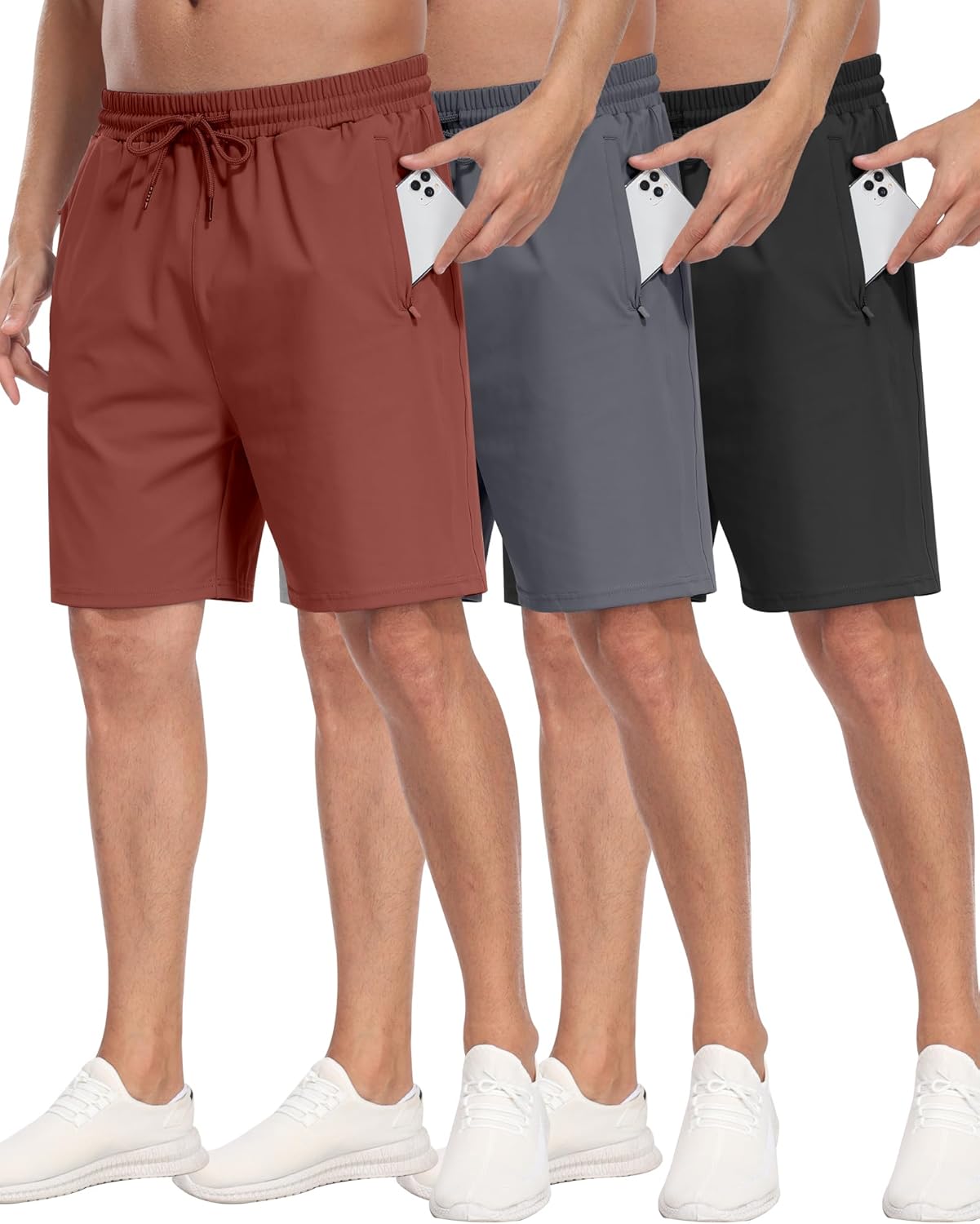 3 Pack Men’s Athletic Running Shorts with Zipper Pockets,Gym Workout Basketball Hiking Shorts for Men