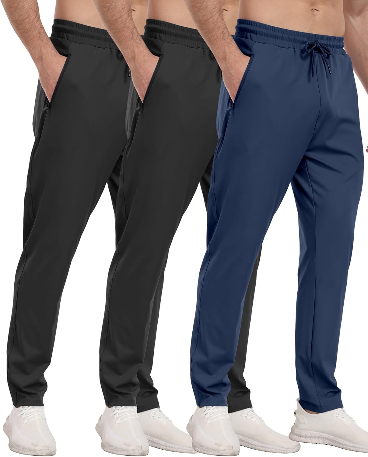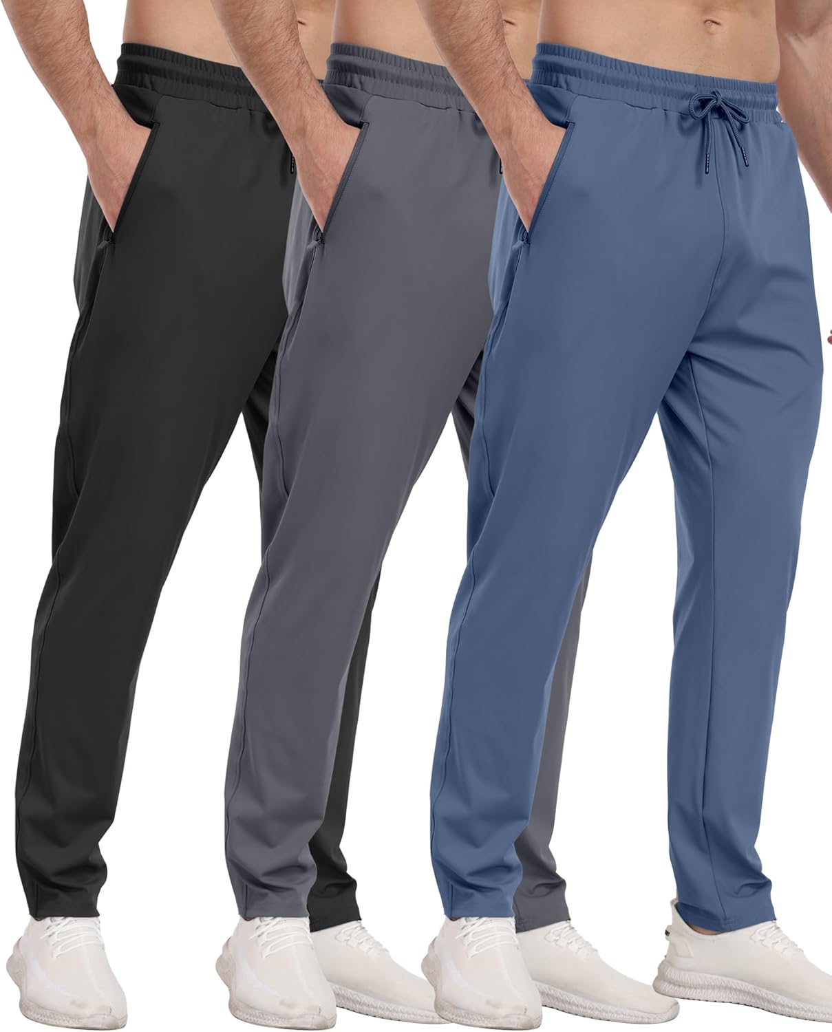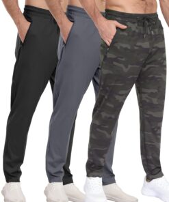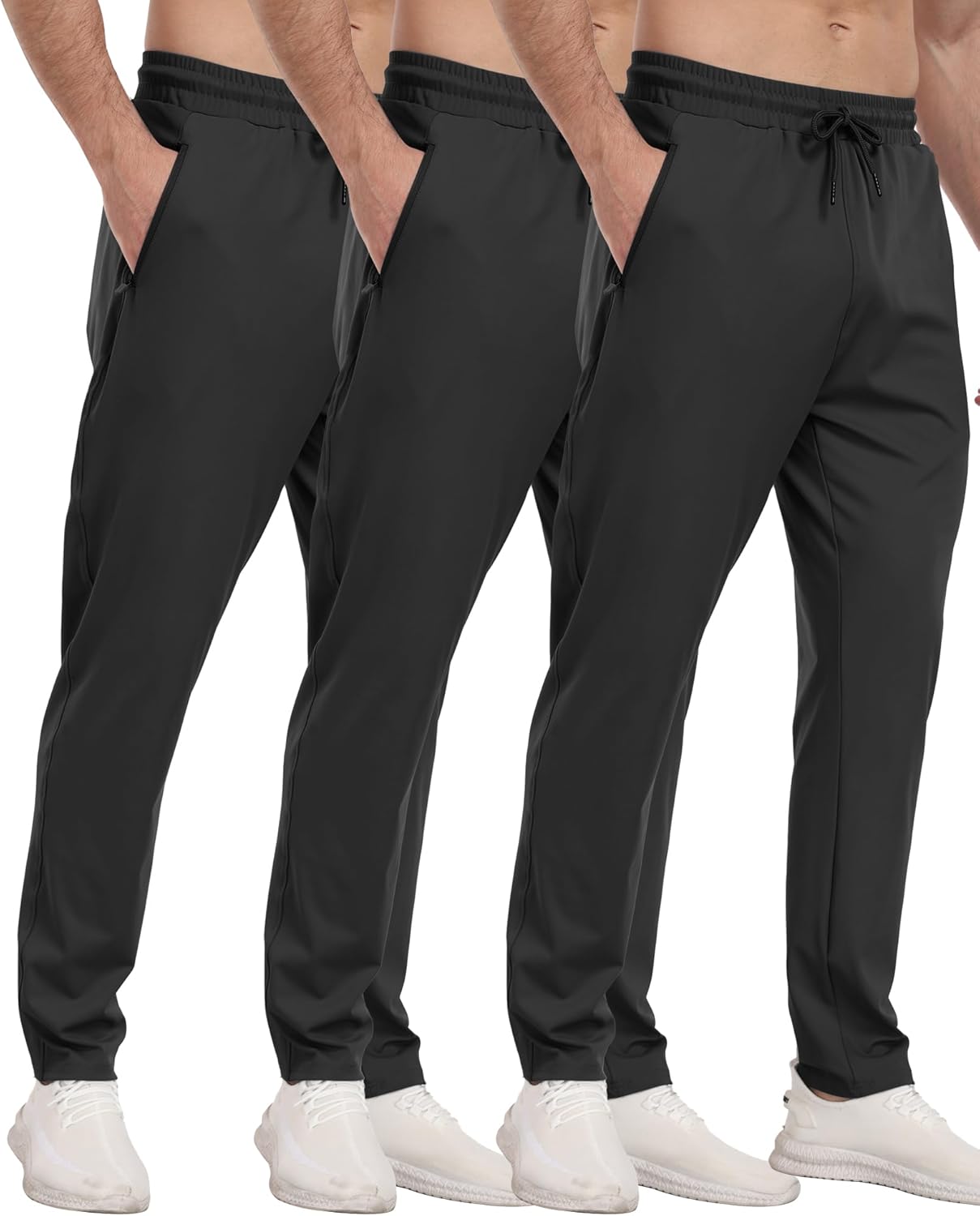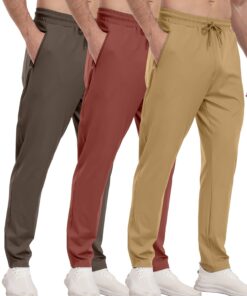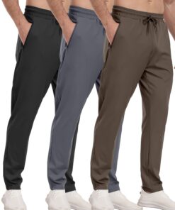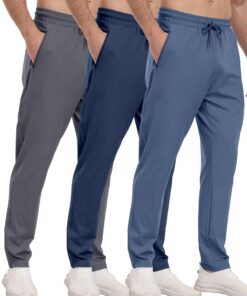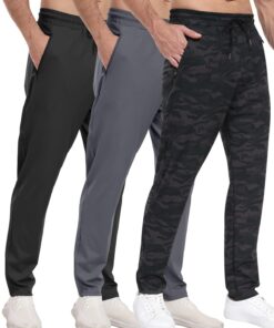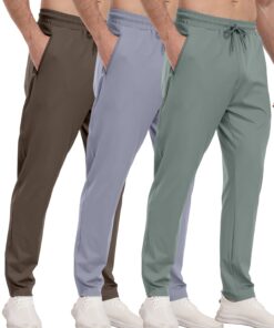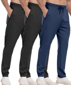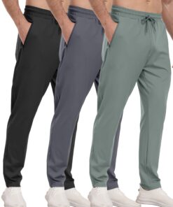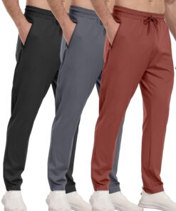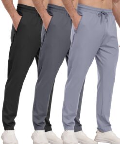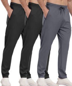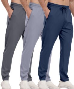 3 Pack Men’s Athletic Pants with Zip Pockets, Lightweight, Quick Dry, Workout Sweat Pants