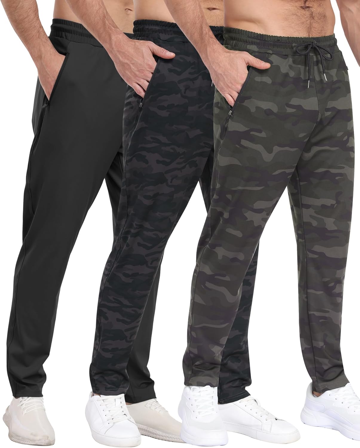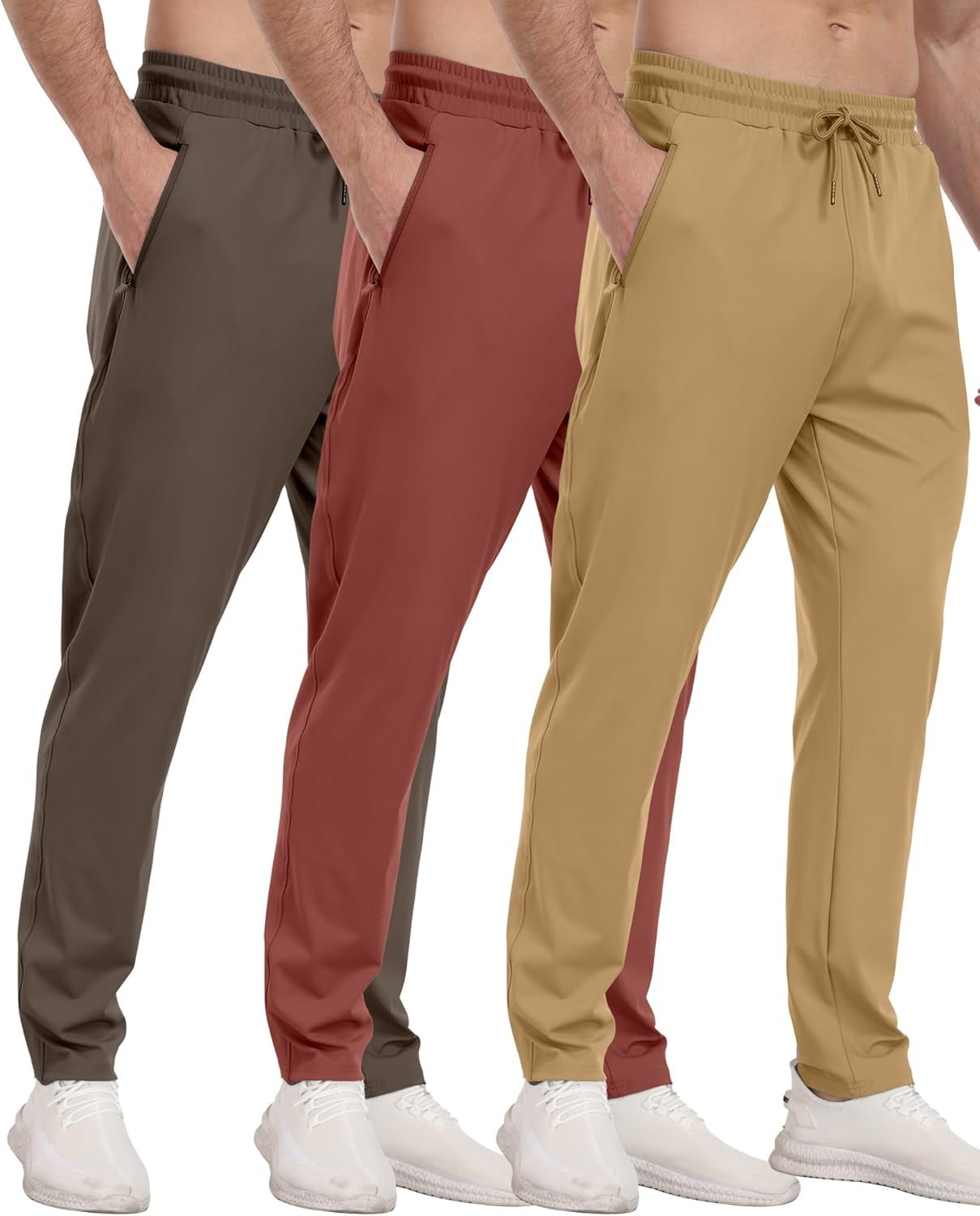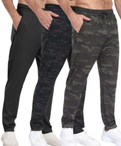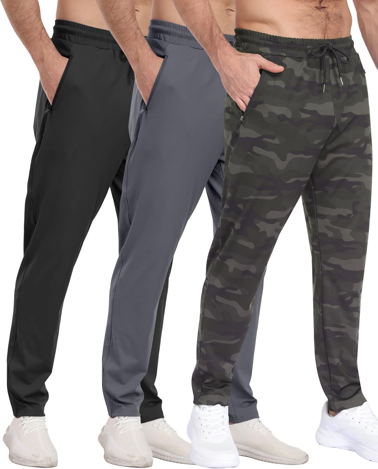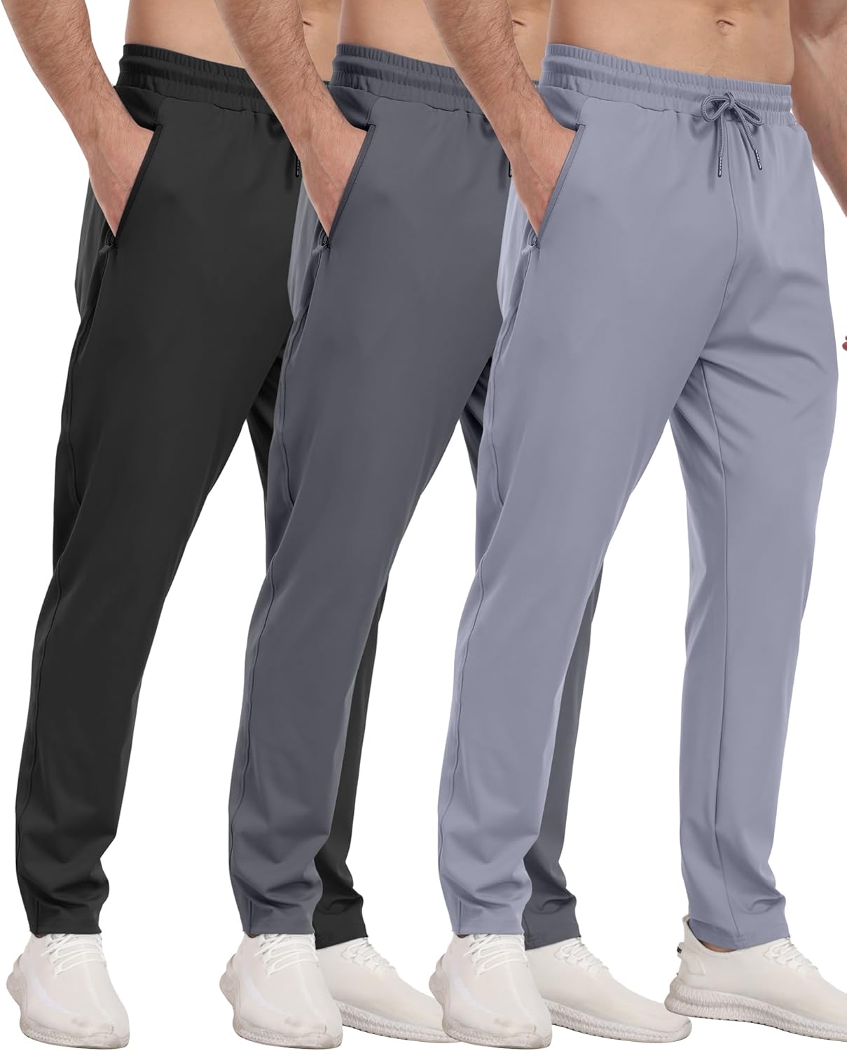 3 Pack Men’s Athletic Pants with Zip Pockets, Lightweight, Quick Dry, Workout Sweat Pants