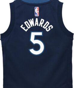 Dress your little fan in authentic NBA style with this Anthony Edwards Minnesota Timberwolves Icon Edition jersey from Outerstuff. Perfect for toddlers aged 2-4, this navy player jersey captures the excitement of professional basketball in a size just right for your growing fan. The jersey features the iconic Timberwolves team colors and styling, complete with Anthony Edwards’ name and number. Made specifically for active toddlers, this jersey combines both comfort and durability for game day or everyday wear. Whether cheering from the stands or playing at home, your little one will feel like part of the team in this official NBA merchandise. The jersey’s design stays true to the team’s signature look while being sized and styled appropriately for young fans.