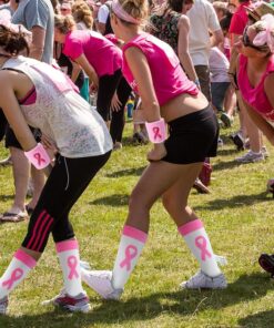 Breast cancer awareness athletic socks: upper tube 8 inches/ 20.32 cm, lower tube 7 inches/ 17.78 cm