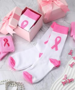 Our breast cancer awareness socks set can be useful for schools and fundraising events. The package includes 6 sets of socks, wristbands, and pins that can be sold in bulk, which can help raise funds for breast cancer research.