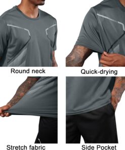 BUYJYA 3 Pack Men’s Gym Shorts Shirt Set Workout Athletic Basketball Running Football Elastic Waist with Pocket Gifts