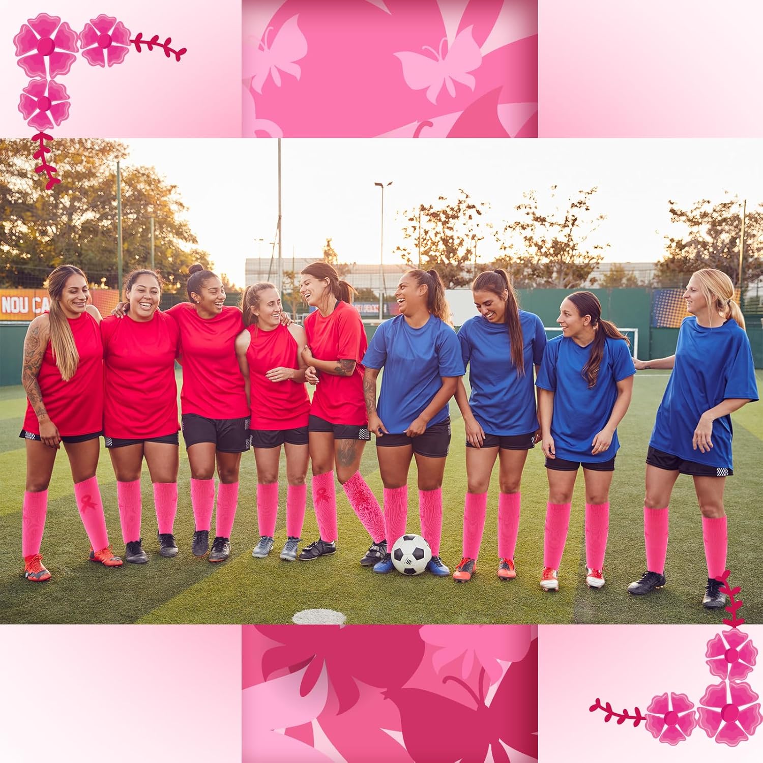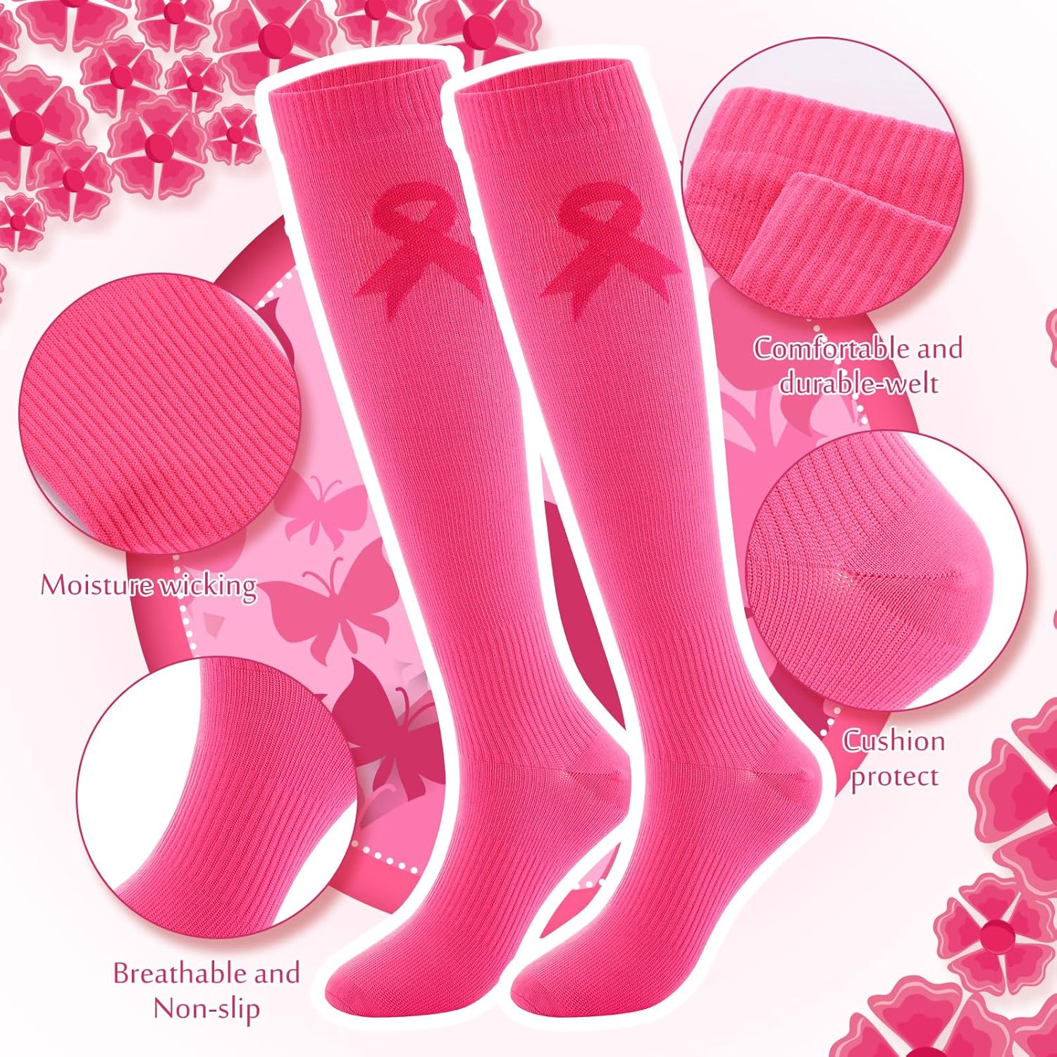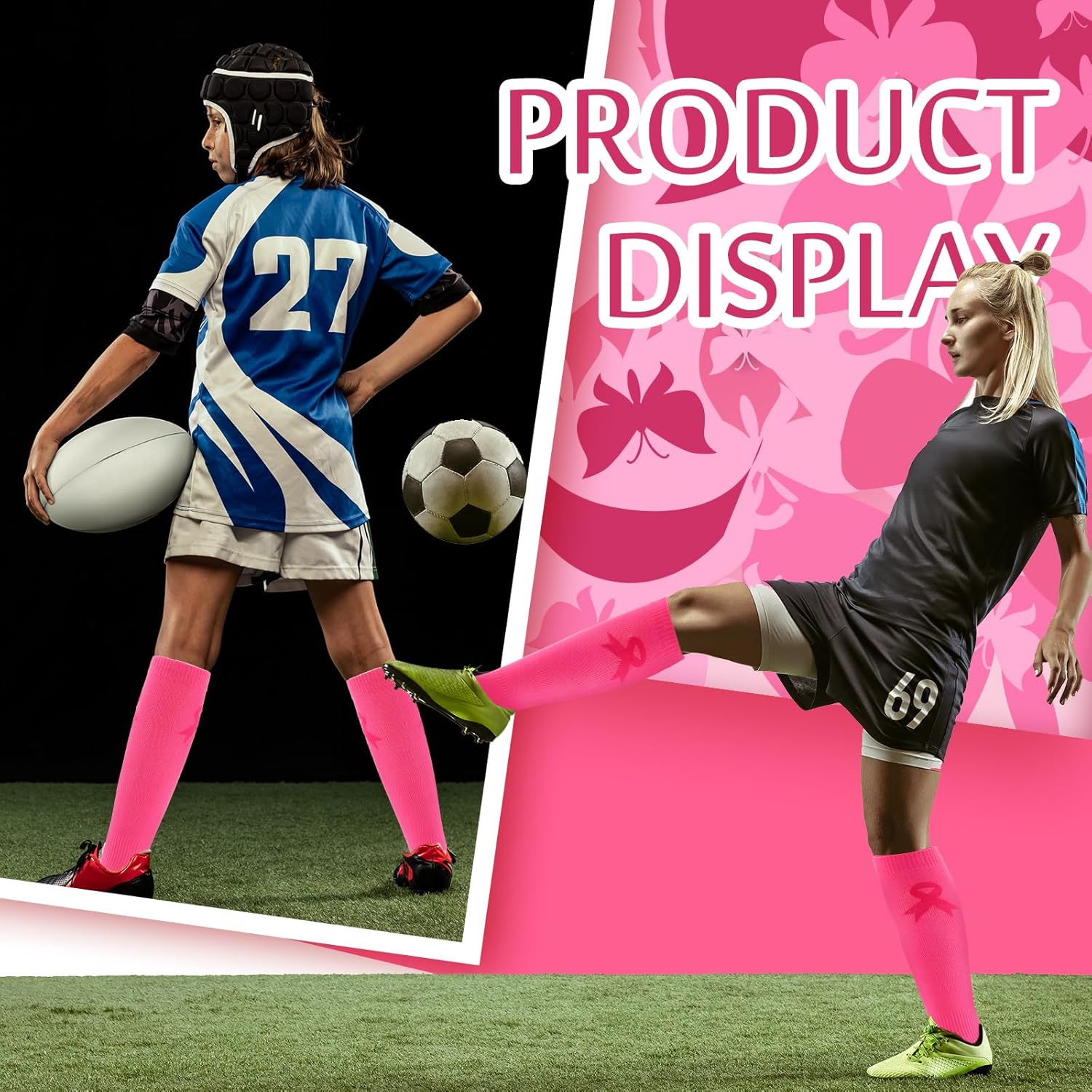 Cozypower 12/24/36 Pairs Breast Cancer Awareness Socks Pink Ribbon Soccer Softball Baseball Football Socks for Women
