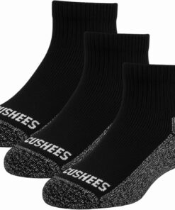 Cushees Ankle socks are Ethically sourced, Ethically crafted and Environmentally friendly American Made for 40 years of Old School Quality for the Modern day. No perfumes, dies or softeners used in finishing. Ideal for tennis or other high impact sports, or for general use when extra cushion is desired. The socks are knit with Hi-bulk Acrylic yarn and use Hi-splice grey yarn in the foot for extra cushioning. The tops are welted so the top will not unravel and will add to long life for the socks. CONTENT OF THE SOCKS IS 85% HI-SPLICE ACRYLIC & 15% SPANDEX. Sizes: Either Medium style 167 or Large style 166 [Medium: sock size 9-11 = Womens shoe sizes 6 – 9 or Mens shoe sizes 5-7] [Large: sock size 10-13 = Womens shoe sizes 10-12 or Mens shoe sizes 9 – 12] XL sock size = Mens shoe sizes 13 – 17 White with Grey bottom