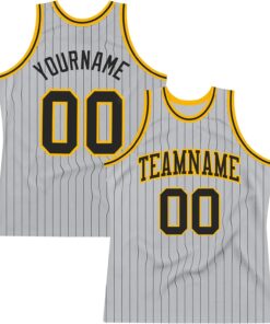 SKU: 10446928314673-custom-name-team-name-number-gray-black-pinstripe-black-old-gold-authentic-basketball-jersey-personalized-basketball-jersey Category: