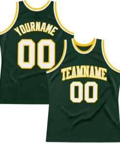 Custom Name Team Name Number Hunter Green Gold Authentic Throwback Basketball Jersey, Personalized Uniform Basketball Shirt