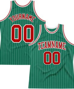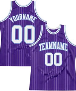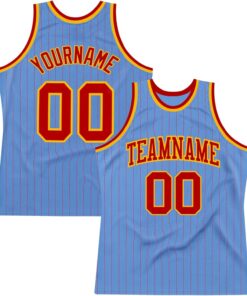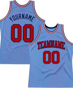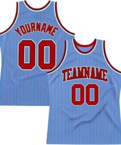 Custom Name Team Name Number Light Blue Red Pinstripe Red-Cream Authentic Basketball Jersey, Personalized Basketball Jersey