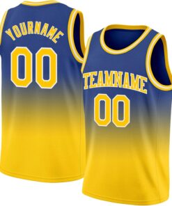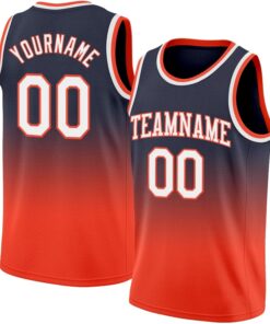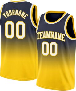 Custom Name Team Name Number Navy White-Gold Authentic Fade Fashion Basketball Jersey, Personalized Basketball Jersey