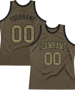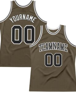 Custom Name Team Name Number Olive Black-White Authentic Salute 2 Service Basketball Jersey, Personalized Basketball Jersey