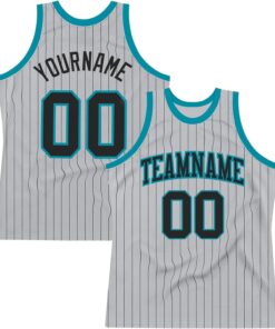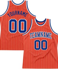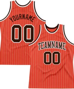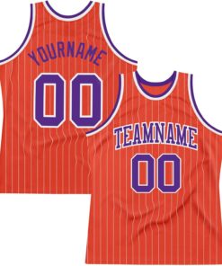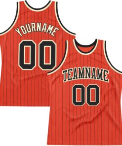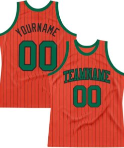 Custom Name Team Name Number Orange Black Pinstripe Green Authentic Basketball Jersey, Personalized Uniform Basketball Shirt