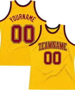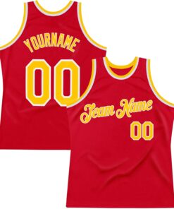 Custom Name Team Name Number Red Gold-White Authentic Throwback Basketball Jersey, Personalized Uniform Basketball Shirt