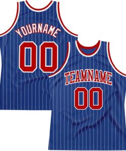 Custom Name Team Name Number Royal White Pinstripe Red Authentic Basketball Jersey, Personalized Uniform Basketball Shirt