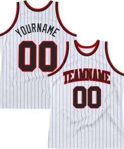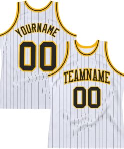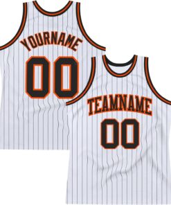 Custom Name Team Name Number White Black Pinstripe Black-Orange Authentic Basketball Jersey, Personalized Basketball Jersey