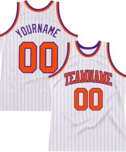Custom Name Team Name Number White Purple Pinstripe Purple Authentic Basketball Jersey, Personalized Uniform Basketball Shirt