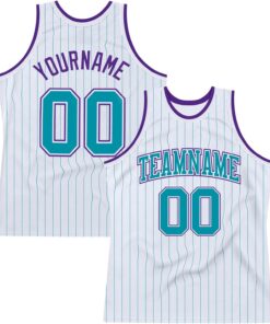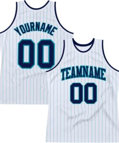Custom Name Team Name Number White Teal Pinstripe Black Authentic Basketball Jersey, Personalized Basketball Jersey