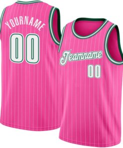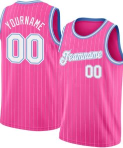 Custom Team Name Number Pink Pinstripe White-Light Blue Authentic Basketball Jersey, Personalized Uniform Basketball Shirt