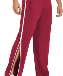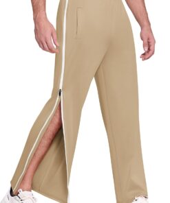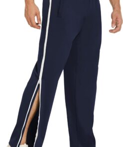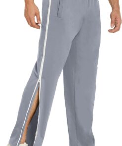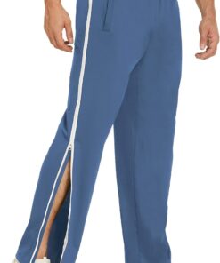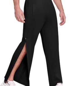 Deyeek Mens Tear Away Basketball Pants 2 Side Zippers Snap Off Full Open Down Sweatpants Leg Post Surgery Pant with Pockets