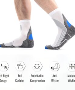 Engineered for maximum protection, crafted with innovative Coolmax and Tactel fibric, and ergonomically designed with compression system focusing on the arch and ankle, Tactia mens running socks excel in ultimate comfortability, moisture wicking, and performance in every sport.