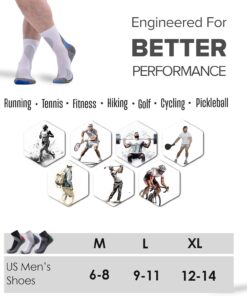 - Ideal for various athletic activities such as running, hiking, golf, fitness, tennis, cycling, etc. and work socks.