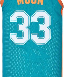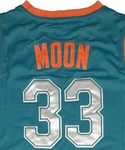 The sewn white and orange lettering and graphics on the jersey, as well as the white and orange stitching on the sides, give the green jersey a sense of story.