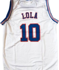 Step onto the court with this iconic Lola #10 White Basketball Jersey! Perfect as a Costume & Everyday Wear Uniform, this jersey captures the fun of 90s Sports Movies. Crafted from high-quality polyester with printed details, this jersey features Lola’s name and number 10, along with distinctive blue and red trim. It’s designed for Unisex Adult wear, ensuring a comfortable fit for fans of all genders. Whether you’re looking for the ultimate Halloween outfit, a cool piece of Fan Gift memorabilia, or just a stylish uniform for casual wear, this basketball jersey is a slam dunk!