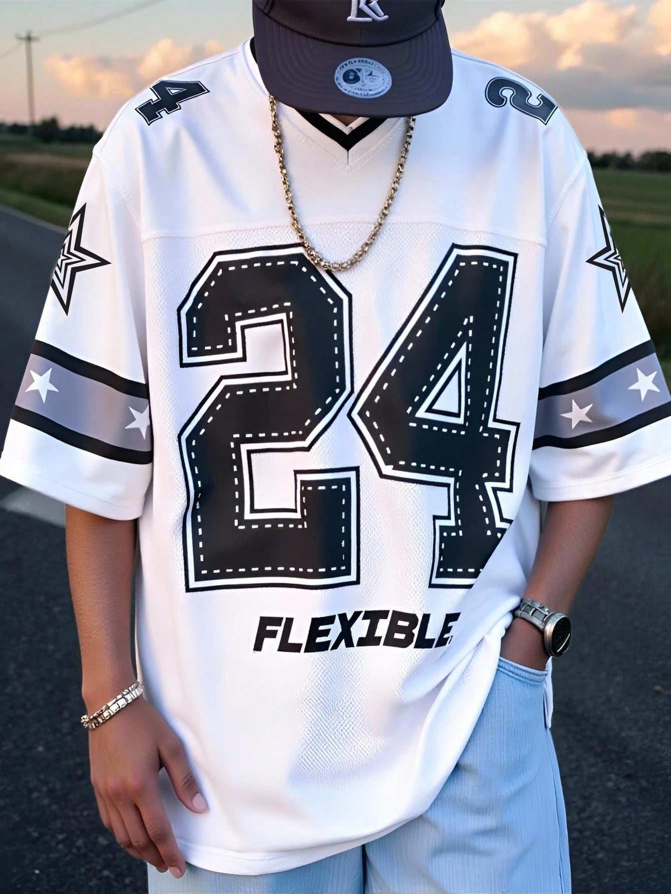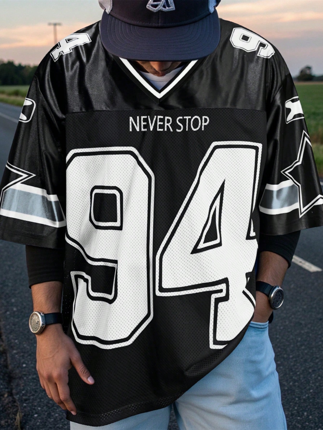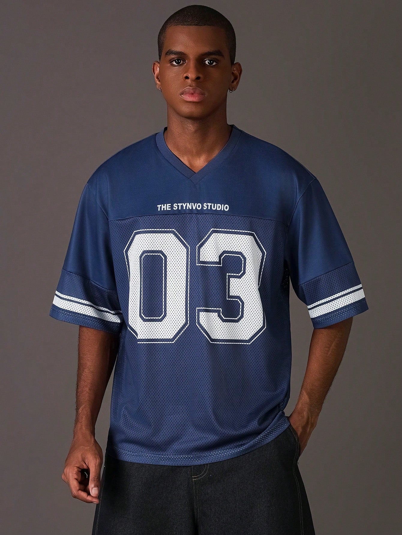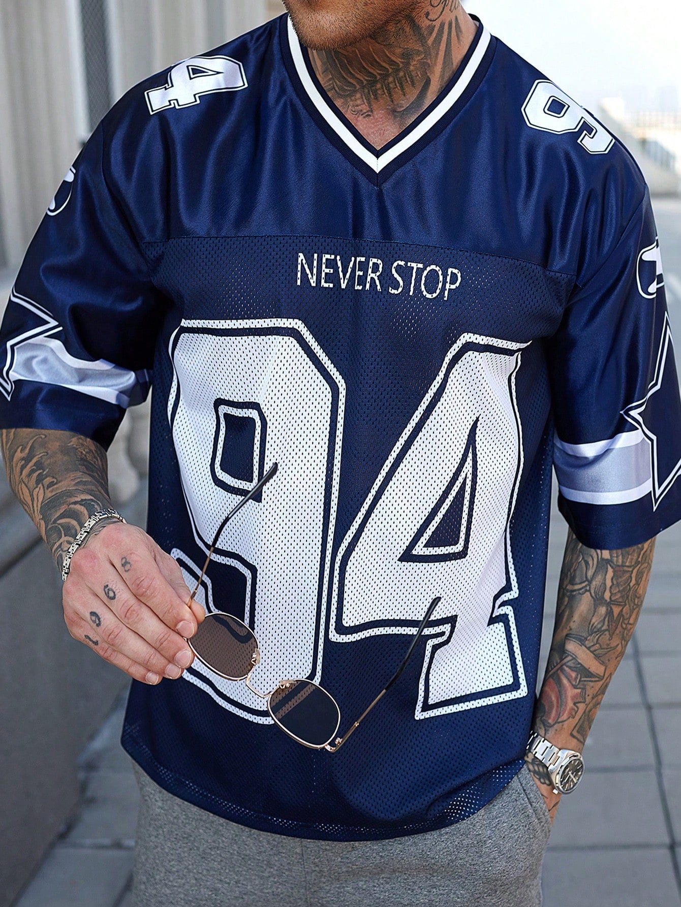 SKU: 10443113070897-manfinity-emrg-mens-solid-color-contrast-v-neck-short-sleeve-numeric-print-casual-basketball-jersey-style-t-shirt