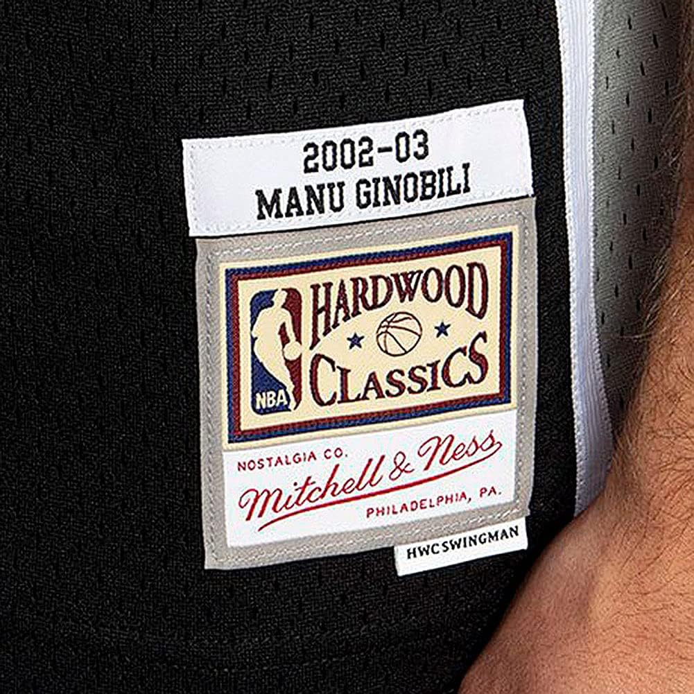 This is a Manu Ginobili San Antonio Swingman Throwback Jersey. Made by Mitchell & Ness, this jersey has heat sealed graphics, player name, and number. Fits true to size. Officially licensed.