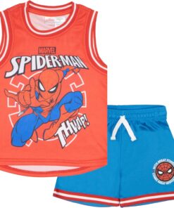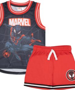 Our Marvel Boys Basketball Jersey & Shorts 2-Piece Matching Set features your child’s favorite superheroes! Choose from Avengers, Spider-Man or Miles Morales designs. These sets include a sleeveless basketball jersey and matching drawstring shorts, perfect for active kids. They make a great gift for any little hero out there who loves comic books and superheroes. Made from 100% polyester, these sporty outfits are designed for both comfort and durability. The pull on top and elastic waist shorts are easy for kids to put on and take off by themselves. They are machine washable for easy care and will retain their shape and colors wash after wash. They’re the perfect choice for sports events, playtime, casual outings or just lounging at home. Get your child moving with this 2-piece clothing bundle.