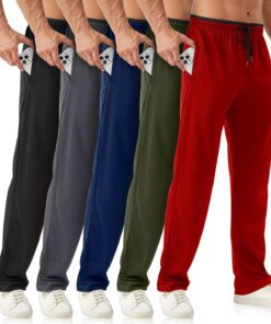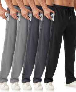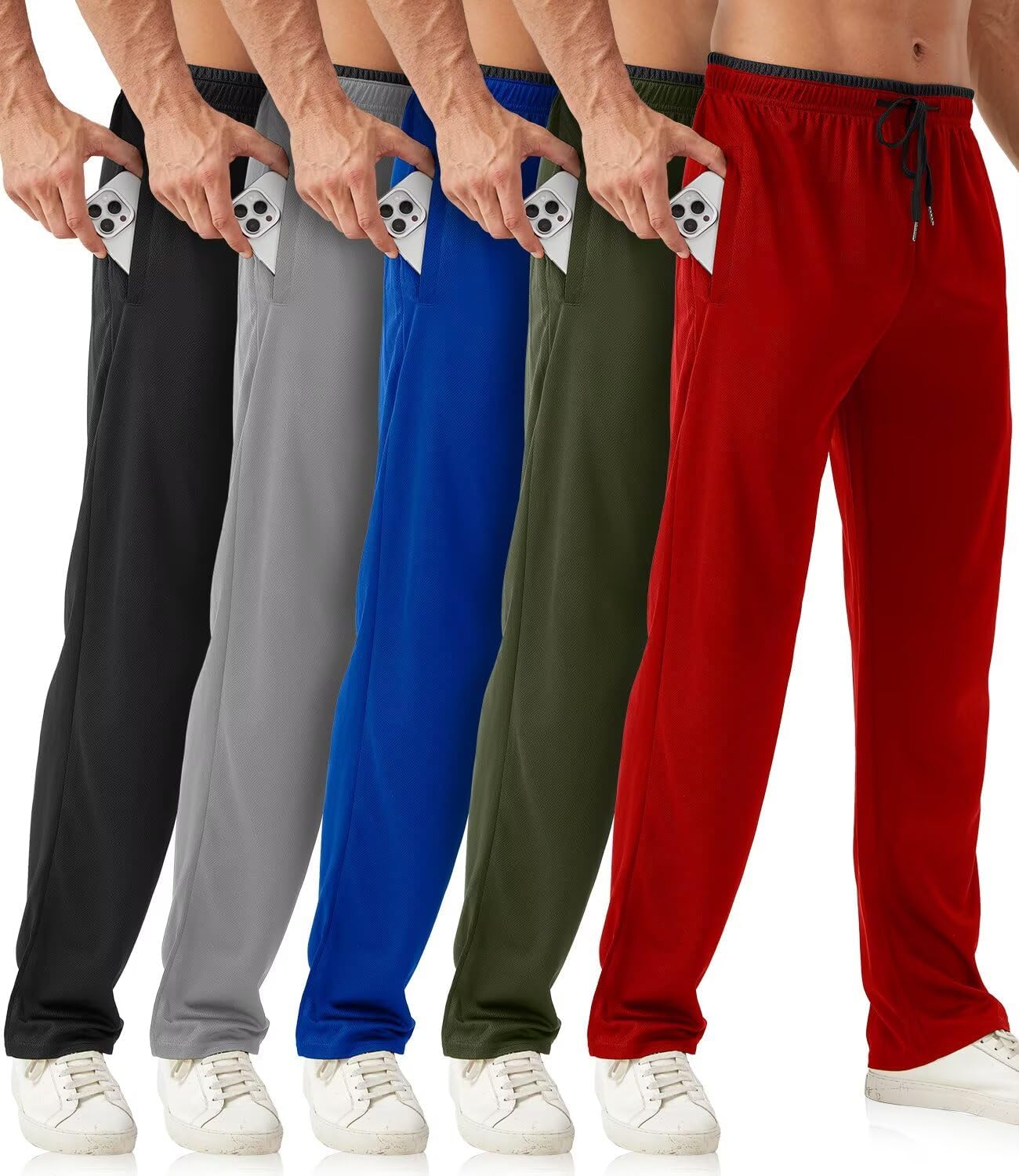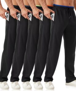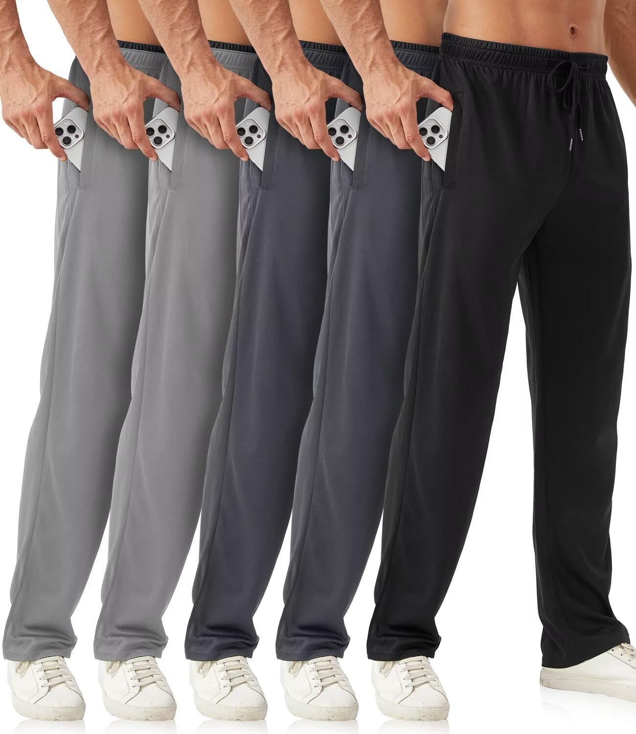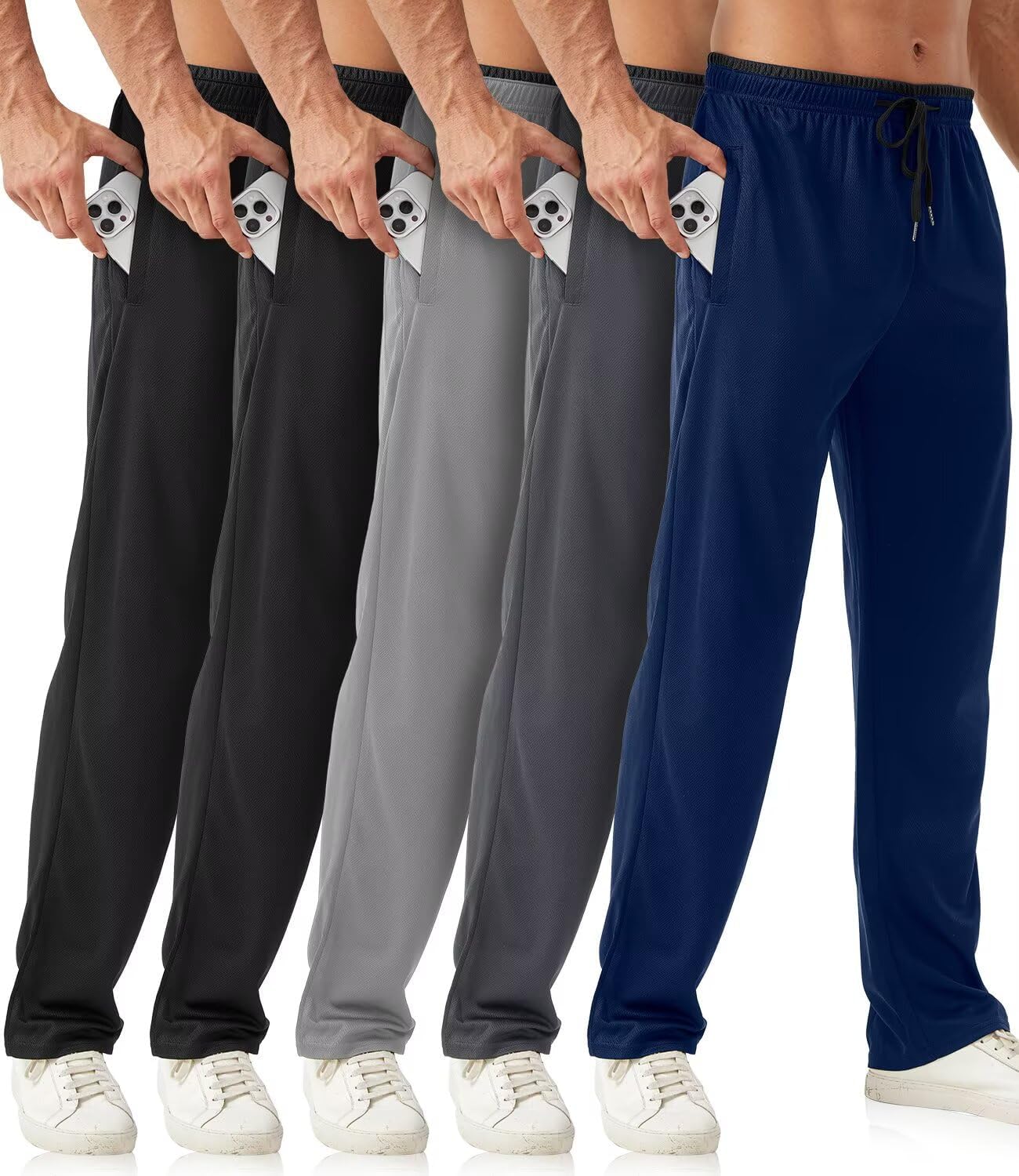 3 Pack Men’s Athletic Pants with Zip Pockets, Lightweight, Quick Dry, Workout Sweat Pants