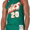 This Mitchell & Ness throwback swingman jersey is 100% polyester mesh and has the quality and detail that approaches those of an authentic jersey coupled with the affordability rivaling that of the replica version. The jersey has twill team & player graphics on the front and back, contrast color banding at the arms and neck, a woven Hardwood Classics Swingman jock tag at the lower left and has the NBA Shield on the upper front shoulder, just like they wear on the court. Manufactured by Mitchell & Ness and officially licensed by the NBA.