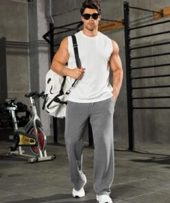 PINSPARK men’s baggy gym sweatpants open bottom