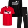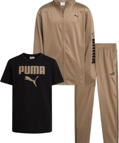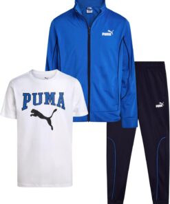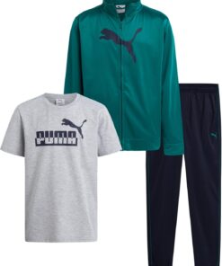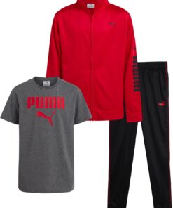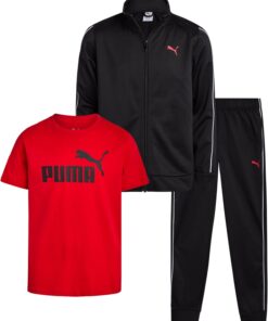PUMA Boys Pants Set – 3 Piece Athletic T-Shirt, Zip Up Jacket, Jogger Pants – Boys Activewear Tricot Jogset (8-16)