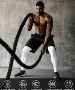 Quick-dry men’s compression tights offer muscle support with moisture-wicking fabric to keep you cool during workouts.