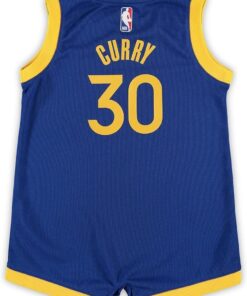 Cheer on your favorite Golden State Warriors player with this adorable Stephen Curry Infants Baby 12-24 Months Blue Icon Edition Romper Onesie Player Jersey. Made from high-quality materials, this romper features the iconic Warriors colors and Curry’s name and number on the back. It’s the perfect outfit for your little one to show their team spirit at games or playdates. The soft fabric and relaxed fit ensure maximum comfort for crawling, playing, and napping. With its stylish design and practical functionality, this romper is a must-have for any young Warriors fan. Sizes range from 12-24 months to accommodate your growing baby. Represent your love for Steph Curry and the Warriors with this cute and cozy jersey romper.
