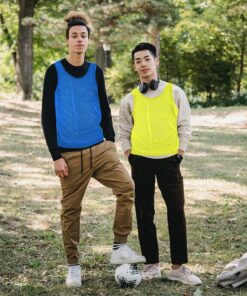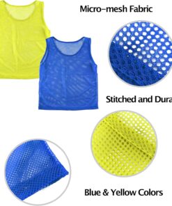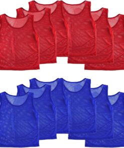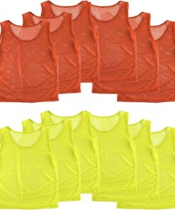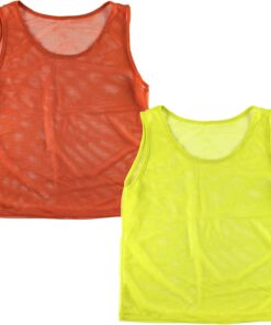 Looking for a convenient way of distinguishing players while on the field? An interchangeable group soccer jersey and youth football jersey for sports athletes in training? Then these scrimmage jerseys are just what you need for a reliable sports vest. Each order comes in a set of 12 nylon mesh jerseys. Includes 12 colored pinnies 6 of each color. These high quality vests are highly visible on the field and can be used by coaches of many sports. Constructed of micro-mesh that is thin yet durable so they can hold up to daily use on the field. Jerseys can fit up to ages of 12 years in children. These practice pinnies measure at an approximate 42″ inch chest size.