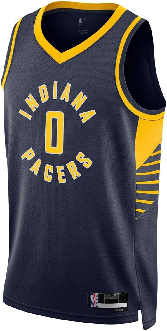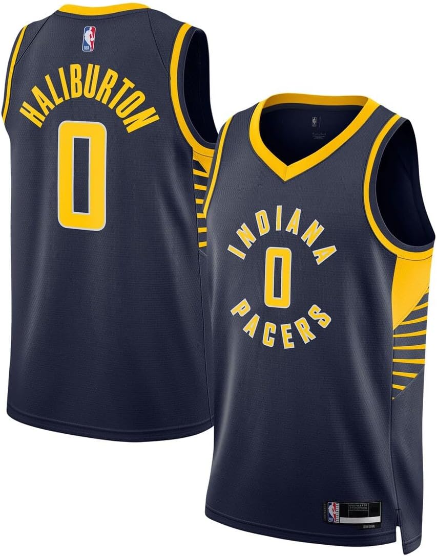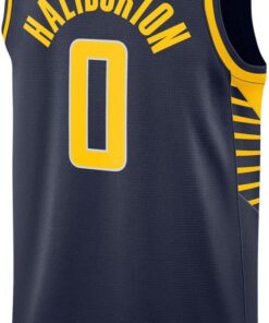 Cheer on your favorite Indiana Pacers player, Tyrese Haliburton, with this official NBA Kids Youth 8-20 Navy Icon Edition Swingman Jersey. Crafted from high-quality materials, this jersey features Haliburton’s name and number on the back, allowing young fans to proudly represent their basketball idol. The navy color and iconic team logo ensure an authentic look, while the swingman style offers a comfortable and relaxed fit. Whether worn for game days or casual occasions, this jersey is a must-have for any young Pacers enthusiast. Sizes range from 8 to 20, ensuring a perfect fit for growing kids and teens. Show your team spirit and support Tyrese Haliburton in style with this officially licensed NBA jersey.