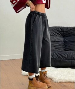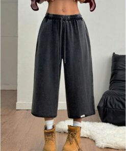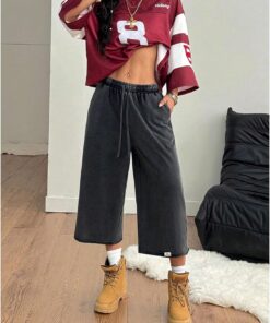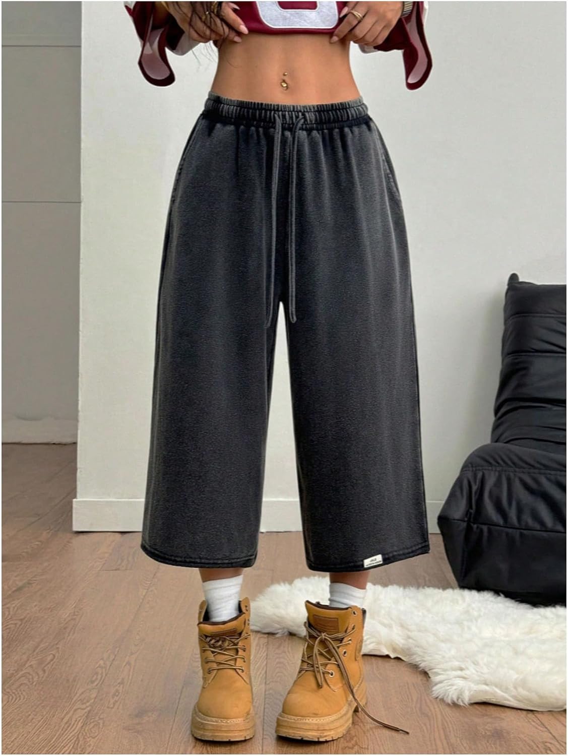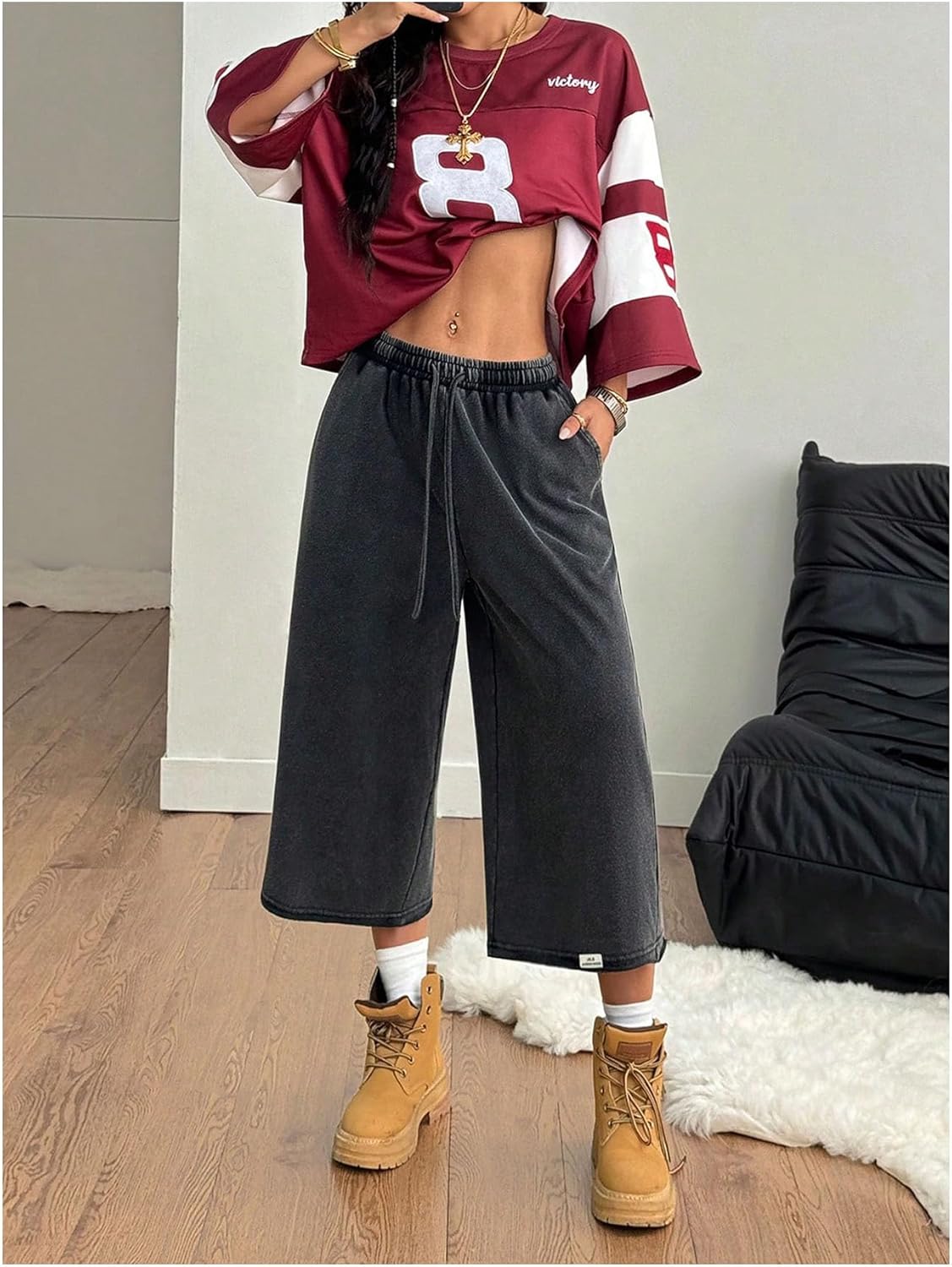 Women’s Drawstring Waist Workout Sweat Shorts Wide Leg Baggy