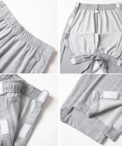 - The mens break away pants are designed with 2 side full tear away side hook and loop, from top waist to bottom with Magic Sticker. The mens post surgery pants can be easily put on or take off even when you are sitting or lying down which can help better recovery.